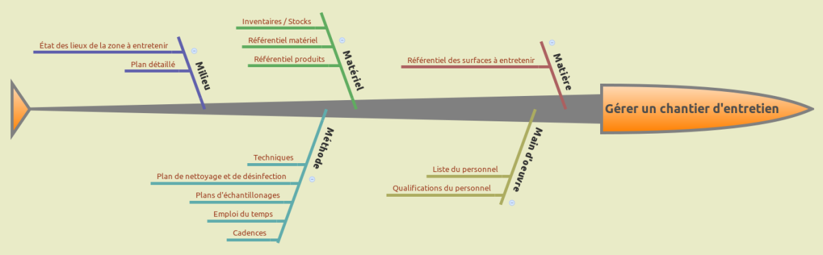 Pour arriver à bien gérer un chantier d'entretien (effet) il faut passer par plusieurs étapes (causes) appuyées par des méthodes et des documents.